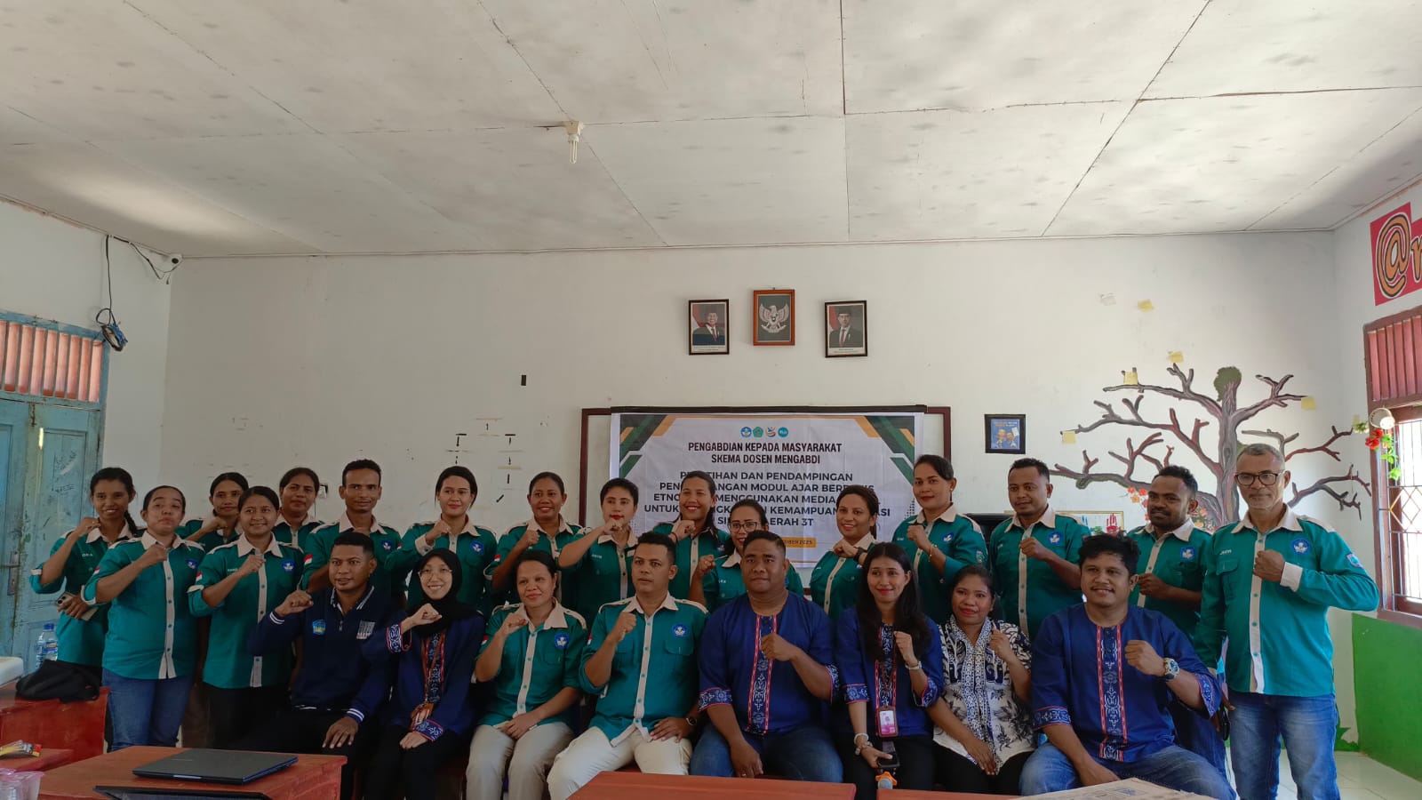 Pada tanggal 4 Oktober 2025, Dosen Program Studi Pendidikan Matematika PSDKU Universitas Pattimura Kabupaten Maluku Barat Daya melaksanakan kegiatan Pengabdian kepada Masyarakat (PkM) di SMP Negeri Tiakur dengan tema “Pelatihan dan Pendampingan Pengembangan Modul Ajar Berbasis Etnosains Menggunakan Media Digital untuk Meningkatkan Kemampuan Literasi Siswa Daerah 3T.” Kegiatan ini didanai melalui hibah PkM Universitas Pattimura setelah lolos seleksi di tingkat PSDKU Unpatti Kab. MBD. Pelaksanaan kegiatan diawali dengan sosialisasi, kemudian dilanjutkan dengan pelatihan dan pendampingan penyusunan modul ajar berbasis etnosains serta penggunaan media digital, disertai pelaksanaan pretest dan posttest untuk mengukur peningkatan pemahaman peserta. Materi terkait penyusunan modul ajar dan integrasi etnosains disampaikan oleh Andy S. K. Dahoklory, S.Si., M.Si., M.Pd.; materi penggunaan Canva dibawakan oleh Ratnah Kurniati MA, S.Pd., M.Pd.; sementara pelatihan penggunaan platform Quizizz dan Gimkit disampaikan oleh Michael Inuhan, S.Pd., M.Sc.